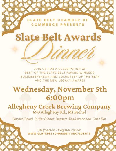 Please Join us for a Celebration of the Best of the Slate Belt Award Winners, Businessperson and Volunteer of the Year, and the New Legacy Award!
